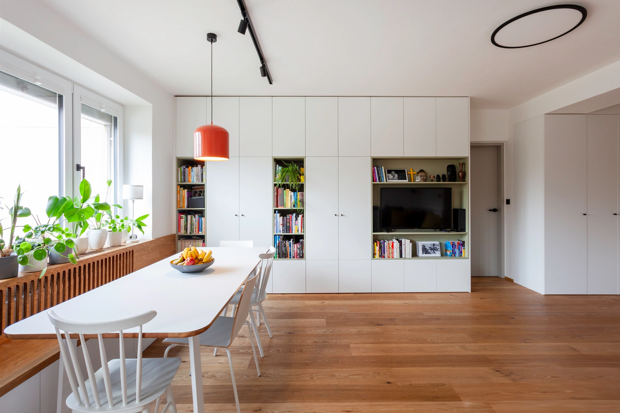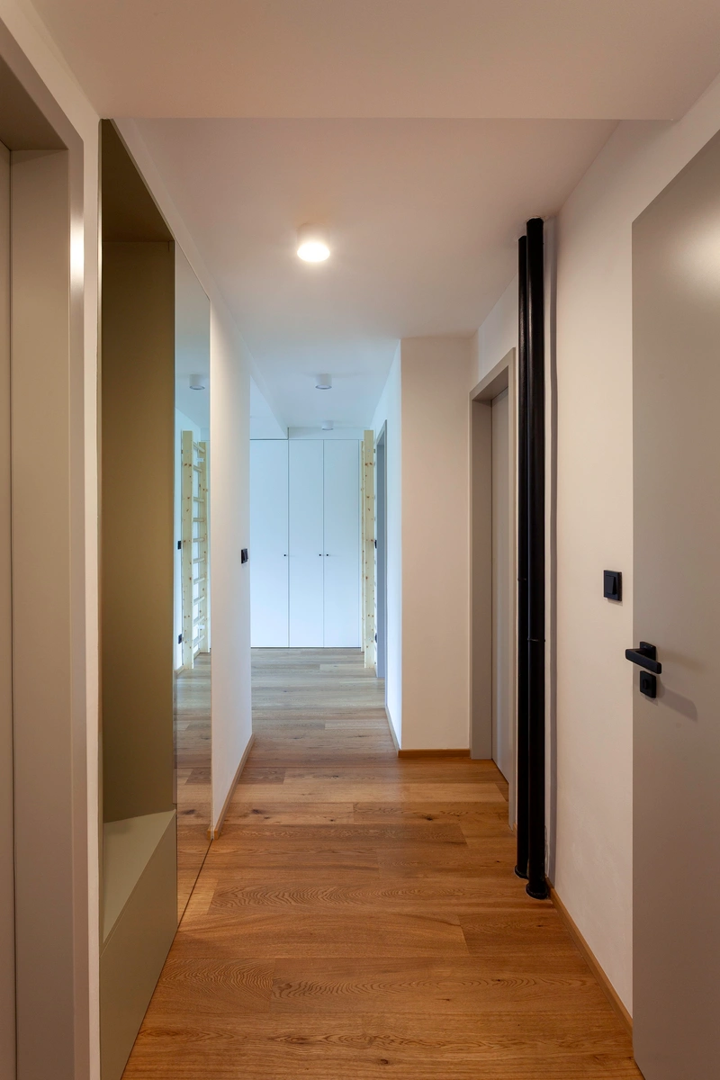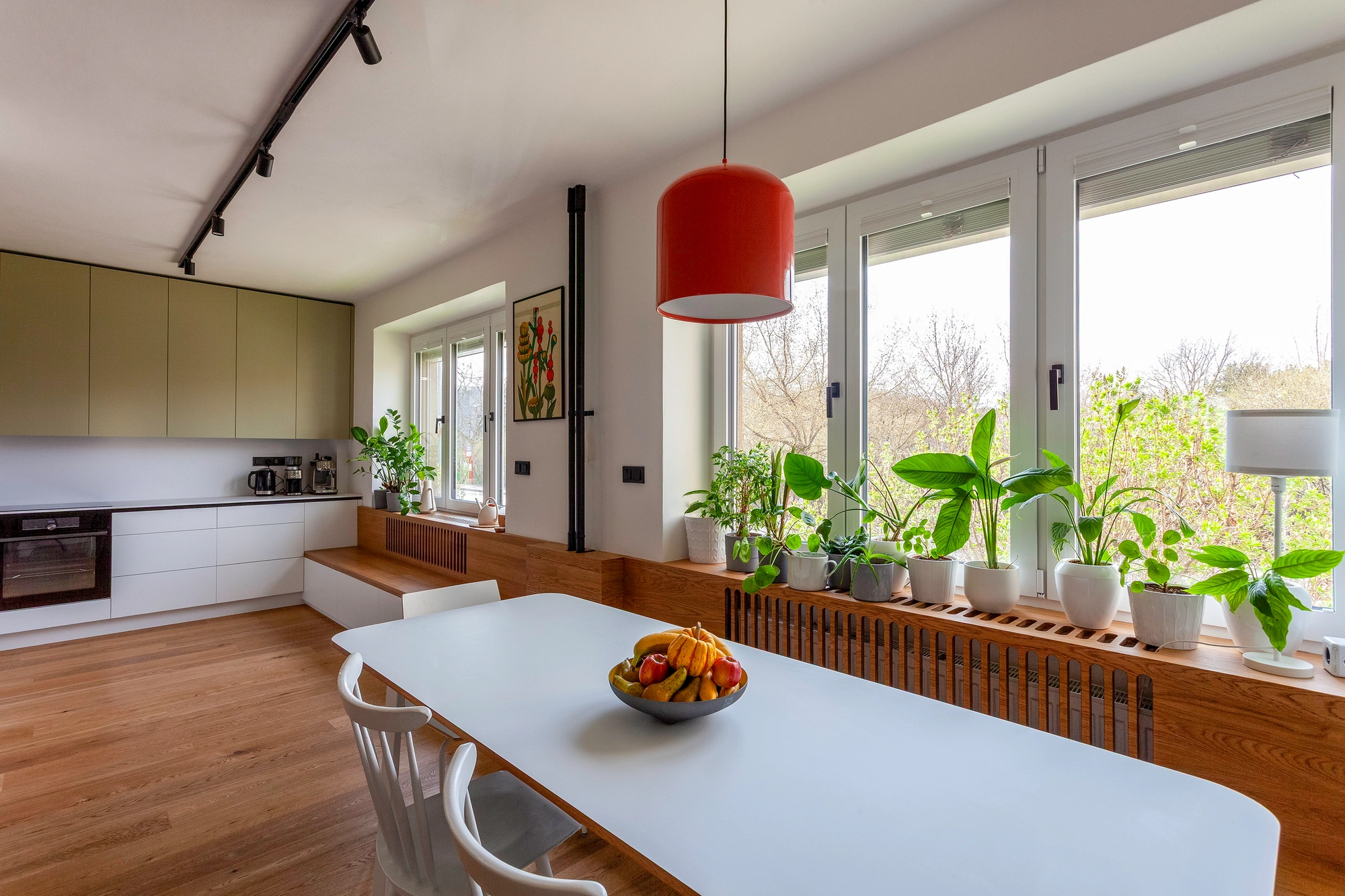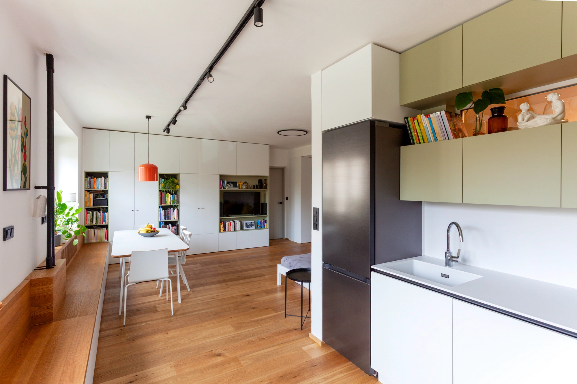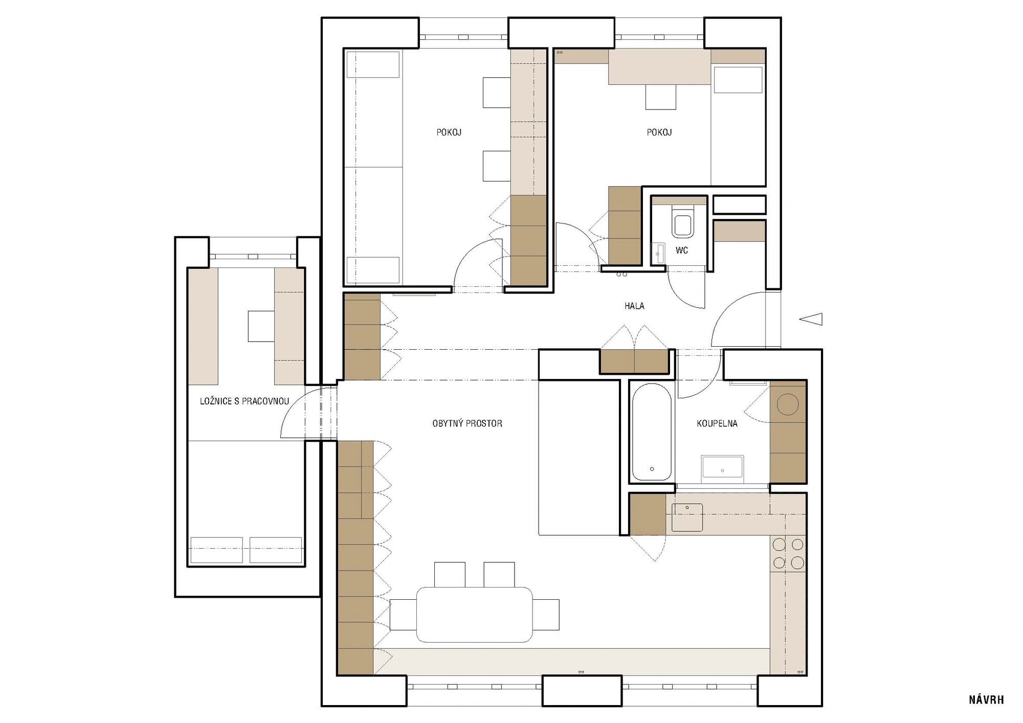 Byt až po strop zanesený nápady z 80.a 90.let. S malými pokoji a neústojným sociálním zázemím. Orientace k rušné komunikaci ale i do společné klidné zahrady starého Braníka. Nosný systém zděného bytového domu, co nabízí velkou svobodu. Měníme zcela dispozici a hodně bouráme.